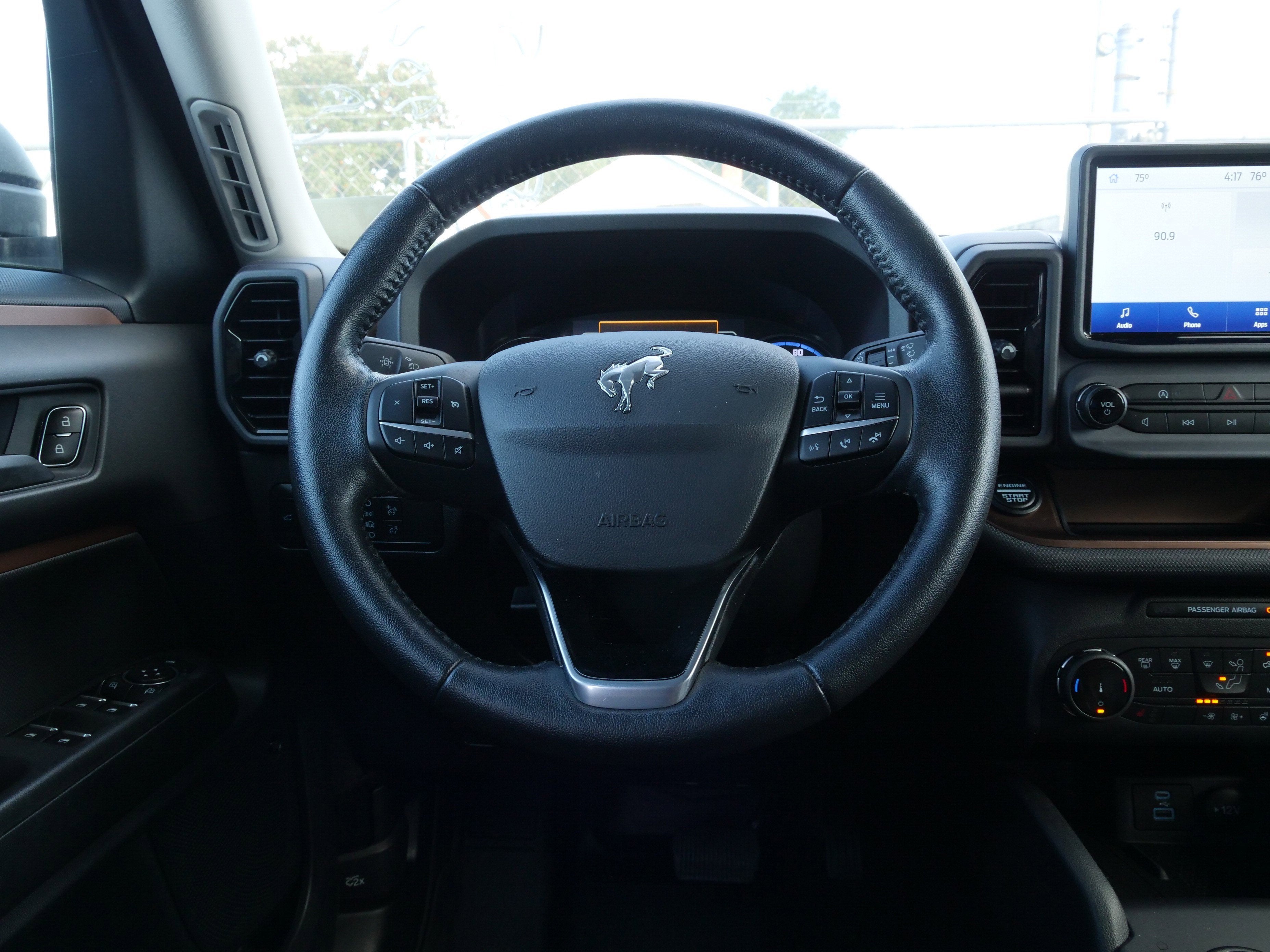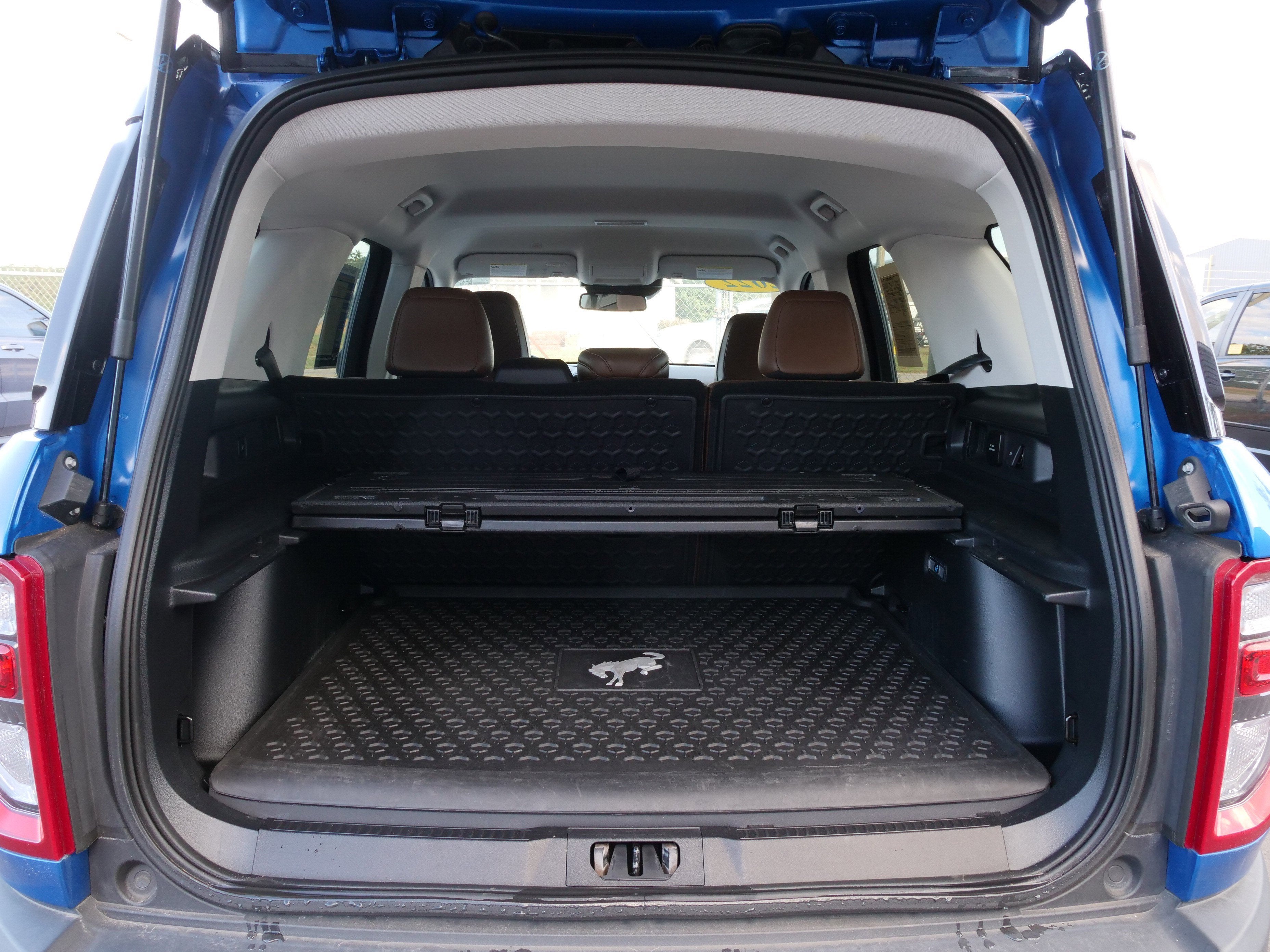 Certified. Velocity Blue Metallic 2022 Ford Bronco Sport Badlands EcoBoost 2.0L I4 GTDi DOHC Turbocharged VCT 8-Speed Automatic 4WD Equipment Group 400A, Premium Package (Auto-Dimming Rear-View Mirror, Body-Colored Door Handles, Dual-Zone Electronic Automatic Temperature Control, HD Radio, Heated Steering Wheel, Leather-Trimmed Heated Sport Contour Bucket Seats, Rear Parking Sensors, Remote Start System, Universal Garage Door Opener (UGDO), and Wireless Charging Pad), Ford Gold Certified Certified, 3.80 Axle Ratio, 4-Wheel Disc Brakes, 6 Speakers, ABS brakes, Air Conditioning, Alloy wheels, AM/FM radio: SiriusXM, AM/FM Stereo, Auto High-beam Headlights, Automatic temperature control, Brake assist, Cargo Management System, Cargo Mat, Compass, Delay-off headlights, Driver door bin, Driver vanity mirror, Dual front impact airbags, Dual front side impact airbags, Electronic Stability Control, Emergency communication system: SYNC 3 911 Assist, Four wheel independent suspension, Front & Rear Floor Liners w/Carpet Mats, Front & Rear Splash Guards, Front anti-roll bar, Front Bucket Seats, Front Center Armrest, Front fog lights, Front reading lights, Fully automatic headlights, Heated door mirrors, Heated front seats, Illuminated entry, Knee airbag, Low tire pressure warning, Occupant sensing airbag, Outside temperature display, Overhead airbag, Overhead console, Panic alarm, Passenger door bin, Passenger vanity mirror, Power door mirrors, Power driver seat, Power steering, Power windows, Radio data system, Rear anti-roll bar, Rear reading lights, Rear seat center armrest, Rear window defroster, Rear window wiper, Remote keyless entry, Roof rack: rails only, Security system, SiriusXM Radio, Speed control, Speed-sensing steering, Speed-Sensitive Wipers, Split folding rear seat, Steering wheel mounted audio controls, SYNC 3 Communications & Entertainment System, SYNC 3/Apple CarPlay/Android Auto, Tachometer, Telescoping steering wheel, Tilt steering wheel, Traction control, Trip computer, Unique Cloth Heated Sport Contour Bucket Seats, Variably intermittent wipers, Wheels: 17 Carbonized Gray-Painted Alum, and Wheels: 17 Carbonized Gray-Painted Aluminum.21/26 City/Highway MPG Odometer is 962 miles below market average!Ford Gold Certified Details:* Vehicle History* Limited Warranty: 12 Month/12,000 Mile (whichever comes first) after new car warranty expires or from certified purchase date* Transferable Warranty* Roadside Assistance* Powertrain Limited Warranty: 84 Month/100,000 Mile (whichever comes first) from original in-service date* 172 Point Inspection* and 22,000 FordPass Rewards Points to use toward first two maintenance visits* Warranty Deductible: $100