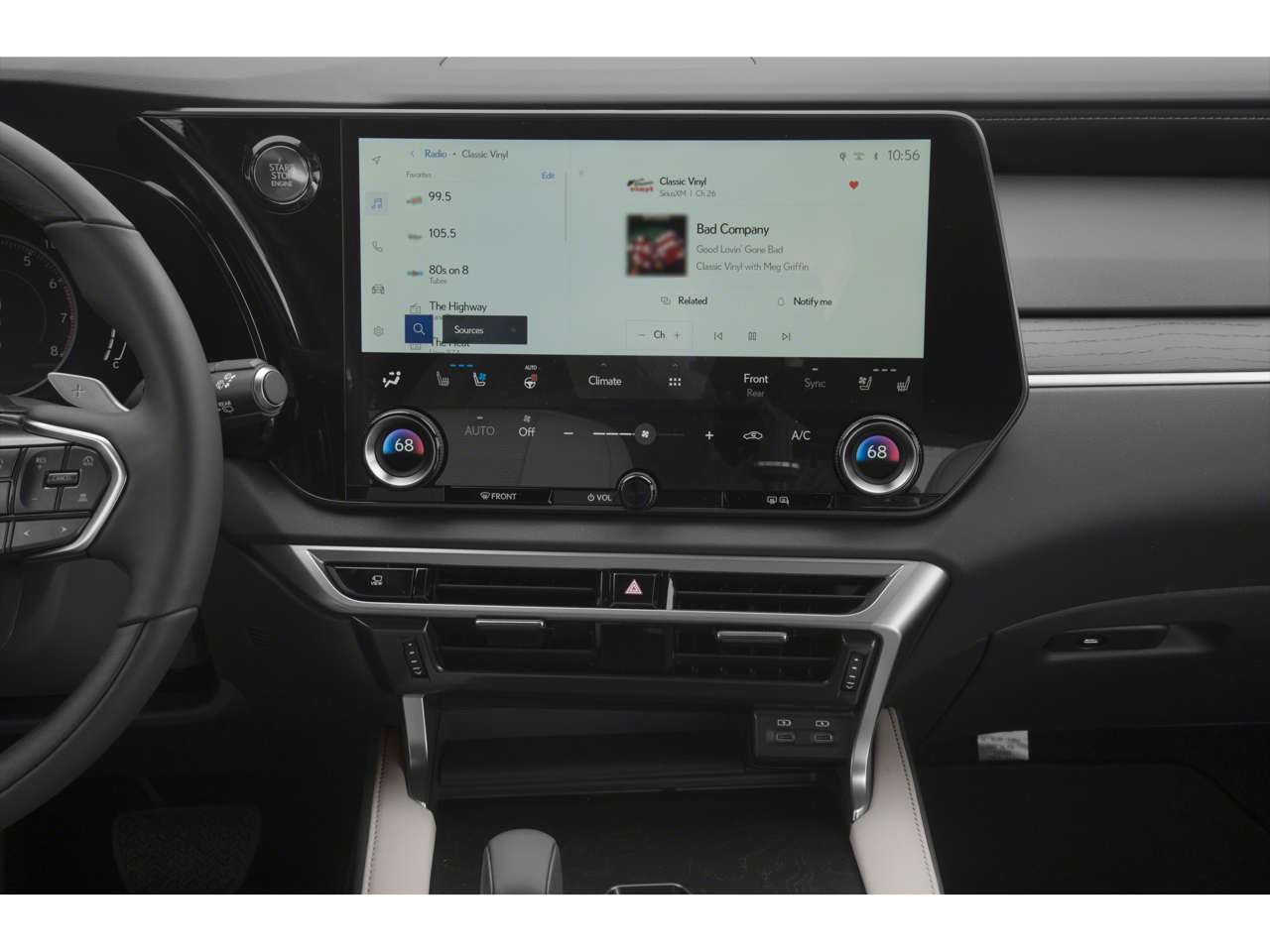 - Radio: Lexus Interface w/9.8" HD Touchscreen Display -inc: 12-speaker premium sound system, navigation system, advanced voice command casual-language voice recognition system, Bluetooth® hands free phone and automatic phonebook download capabilities, HD Radio, wireless Apple CarPlay integration, wireless Android Auto compatibility, Google Assistant, Amazon Alexa, Siri Eyes Free mode, navigation equipped vehicles, MID data sharing, voice recognition, cache radio, Safety Connect w/up to 10-year trial, Service Connect w/up to 10-year trial, Remote Connect w/3-year trial and Wi-Fi Connect w/up to 30-day/3gb trial